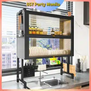 If you dislike seeing dishes and want a cleaner look, a covered dish rack cabinet helps keep drying items protected from dust while maintaining a neat counter.