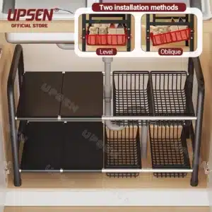#8 UPSEN 2-Tier Under-Sink Organizer – Best for basic under-sink setup