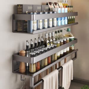 A solid “zone builder” for medium kitchens: put essentials (spices, tools, small items) on the wall and keep your countertop clearer. Buyers typically like wall racks because they reduce cabinet digging.