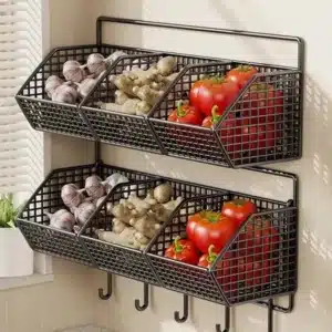 If you want a small “landing zone” for produce and spices, this is a practical wall setup.