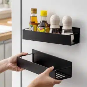 If you have zero wall space, your fridge side is a hidden storage zone. A magnetic rack can hold spices/condiments or small kitchen items without drilling.